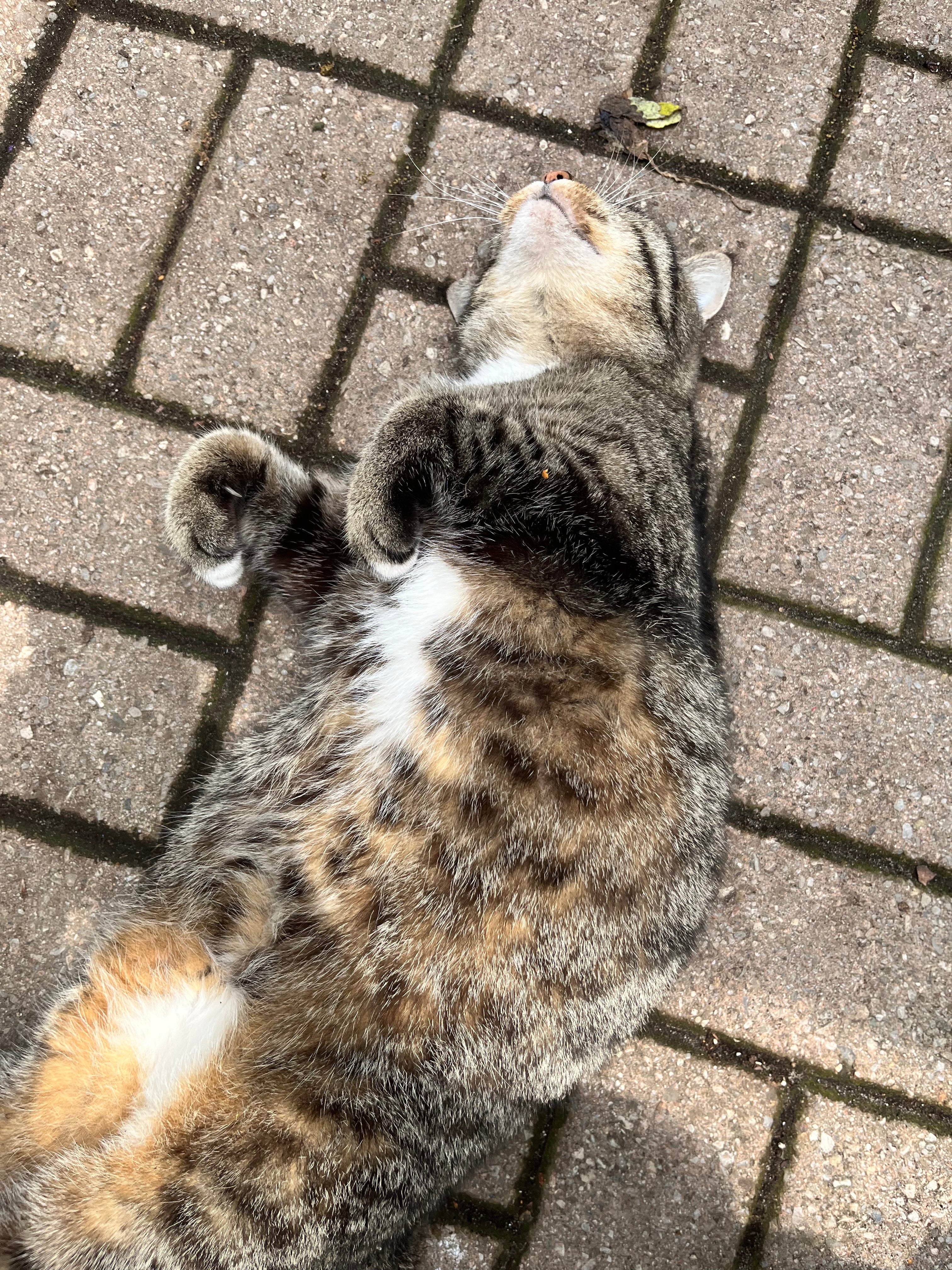 Rolling over and showing her belly to even the newest customers – she's a pro at charming everyone!
