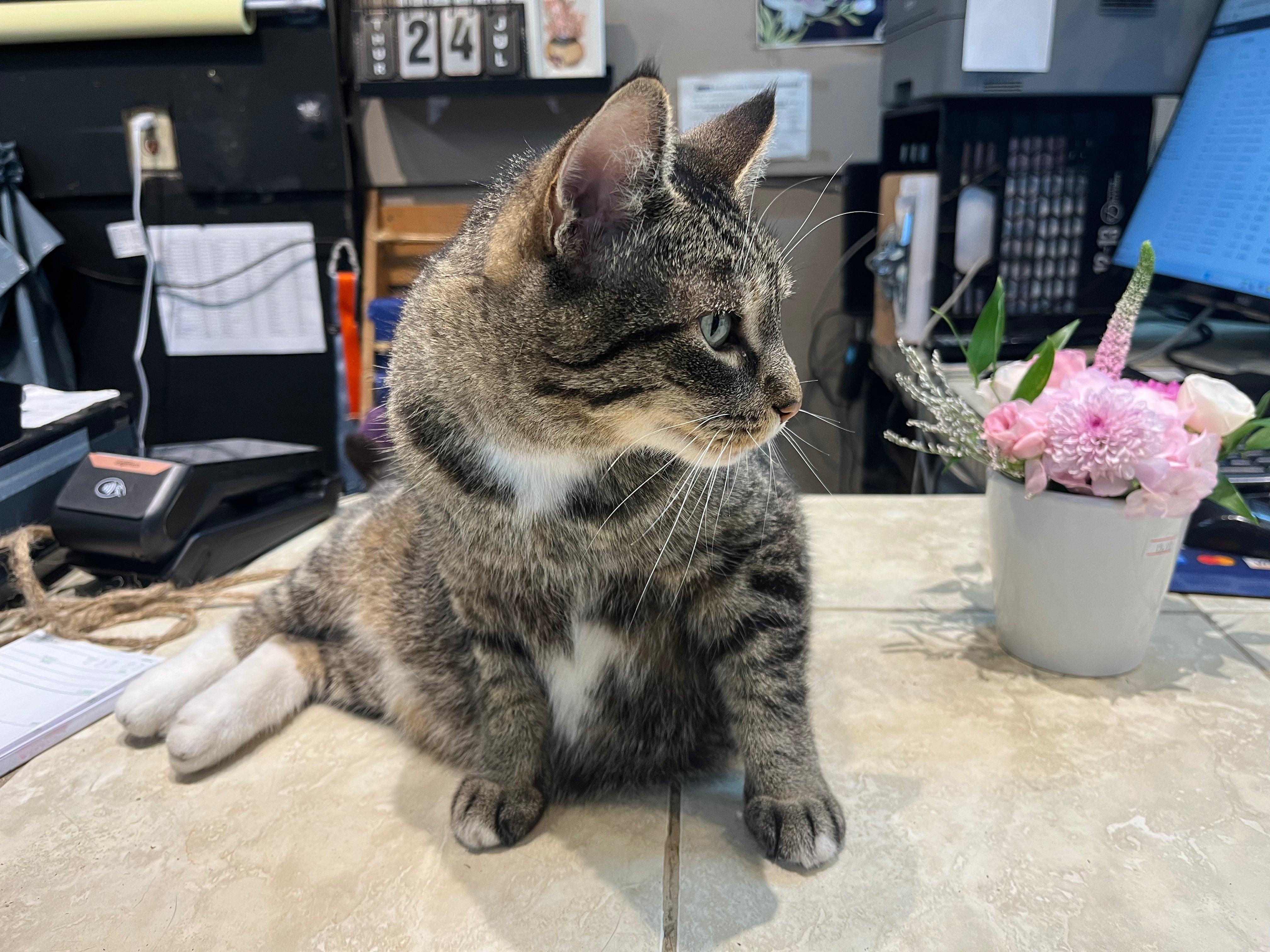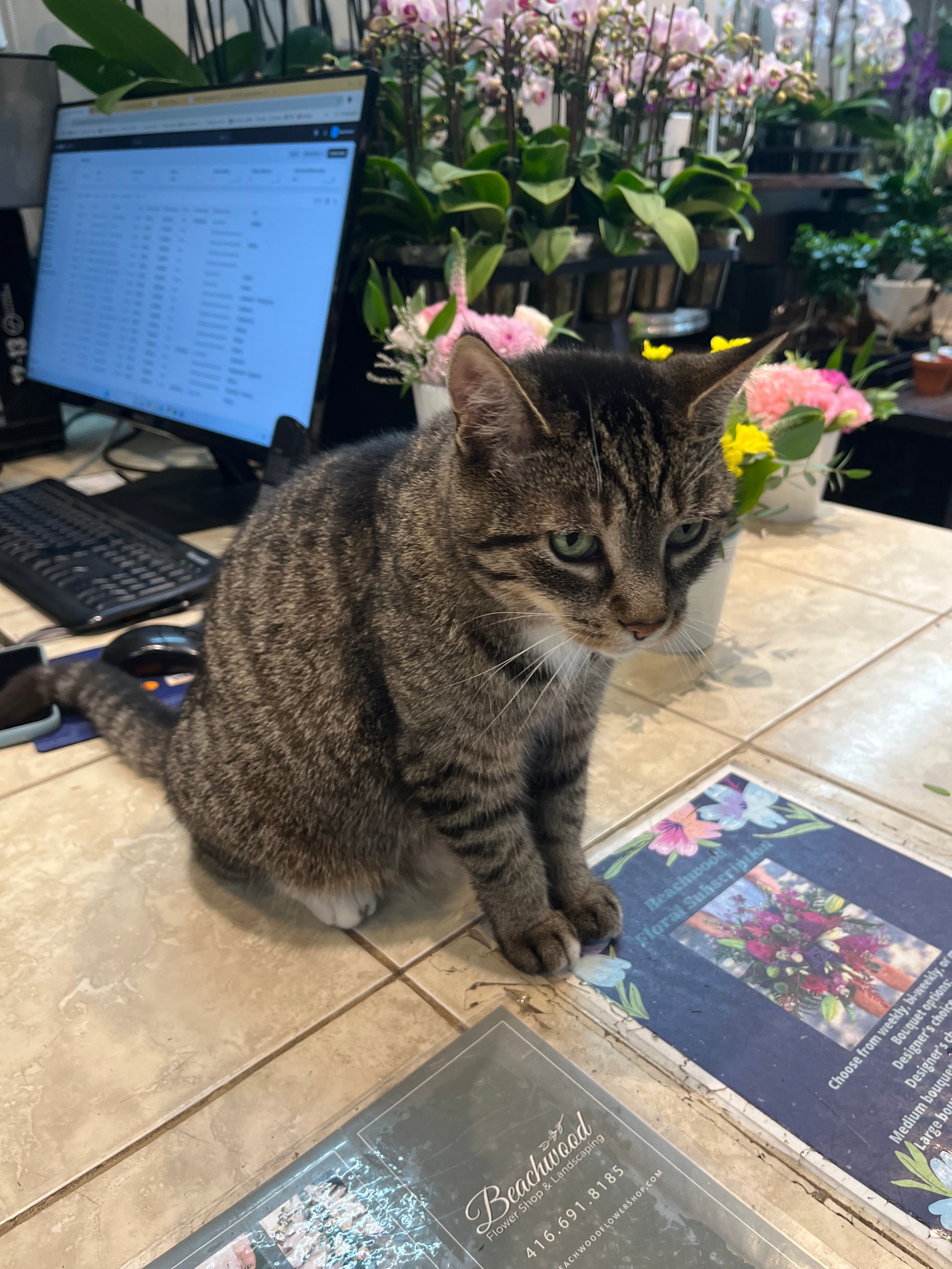 Have you met Doris? She's not just any cat; she's the heart and soul of Beachwood Flower Shop, and our very own Shop Manager!