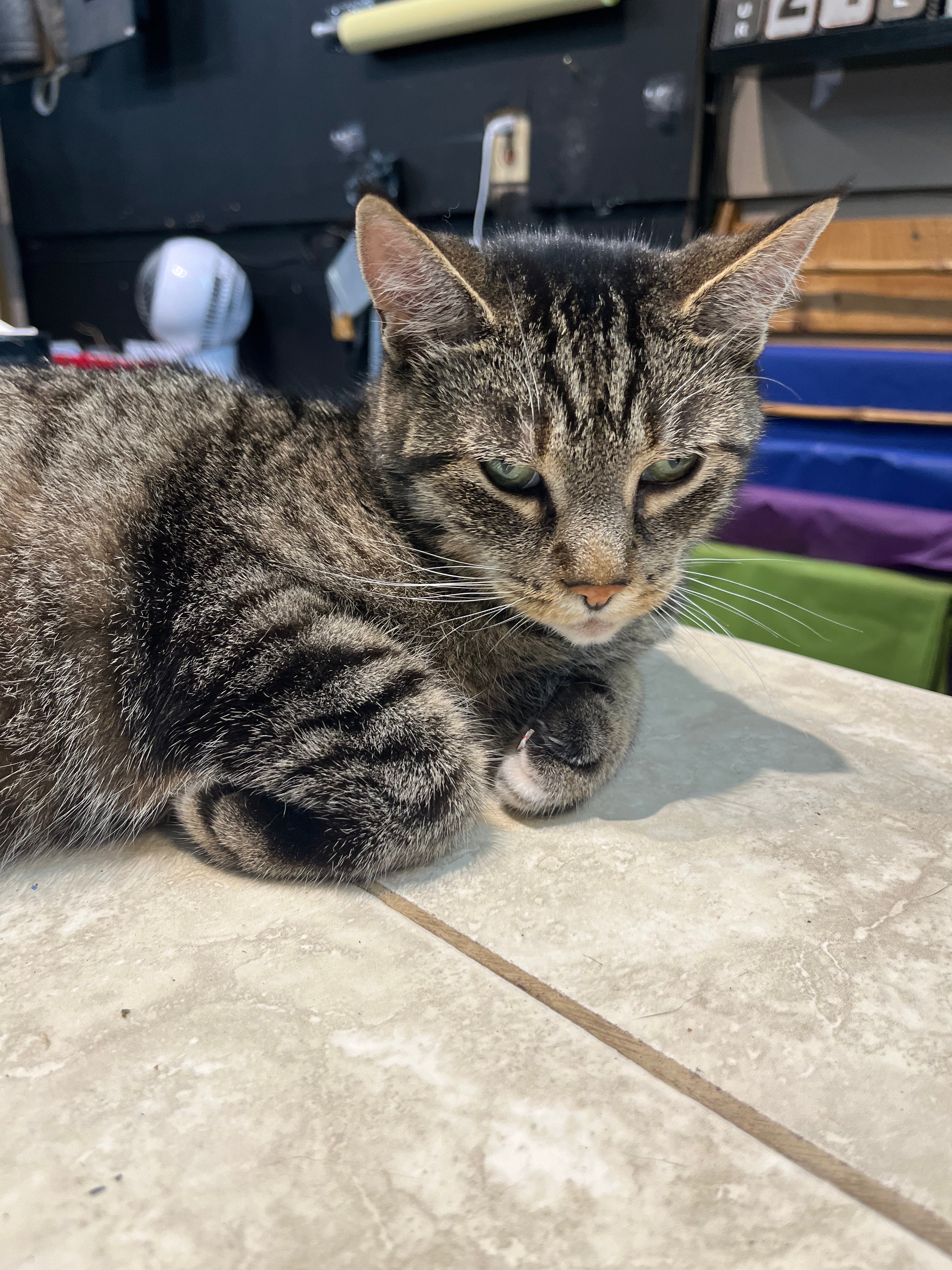 Doris joined our team in 2015, but her journey to us began with a difficult past. After experiencing abuse and abandonment by her previous owner, she found herself at the Toronto Humane Society. It was there that our owner, Jenny, visited the center, found Doris, and knew instantly she had to bring her home. From that moment, Doris's life took a turn for the better, finding a loving forever home right here at the shop.